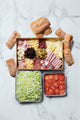 60 x Italian Bread Rolls, 20 x Ham, 20 x Mortadella, 20 x Salami, 20 x Coppa, 20 x Prosciutto, 40 x Provolone, Brie, Tasty Cheese, Butter, Black Olives, Green Olives, Sliced Tomatoes & Lettuce.