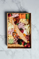 Italian bread, 4 x Cold Meats, 3 x Cheeses, Olives, Giardiniera, Sundried Tomatoes, 2 x Dips, Carrot & Cucumber, Crackers, Fresh Fruit & Dried Fruits.